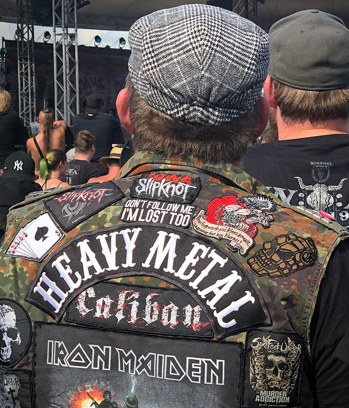 Wie ein Wackener wirkt er nicht. Der typische Metalhead ist männlich (der Frauenanteil nimmt allerdings kontinuierlich zu), ist von Tätowierungen übersät und trägt lange Haare fürs „Headbangen“, kleidet sich in Leder und vielleicht ‘ne Kutte, eine Weste mit Aufnähern seiner Lieblingsbands. Manch ein Altfan kommt langsam in die Jahre, zieht dem Zelt inzwischen ein Wohnmobil oder gar ein Bett im Moshtel, einem Container „mit Hotelcharakter“, vor. Hört vielleicht nicht mehr gut, so wie der Fan am Frühstückstisch nebenan, der von dem Konzert berichtet, das ihm 50 Prozent Hörverlust bescherte. Doch auch solche Probleme werden hier aufgefangen. Gebärdendolmetscherinnen sind im Aufwind. „Die mit den Händen tanzen“ nennt sich das Team um Laura M. Schwengber. Sie übersetzt den Text zur Musik, deren Vibrationen Hörbehinderte im Körper spüren, kunstvoll in Gebärden.